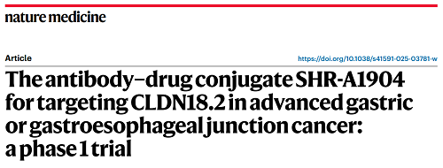 AG亚游医药CLDN18.2 ADC创新药SHR-A1904治疗胃癌临床研究结果荣登Nature Medicine